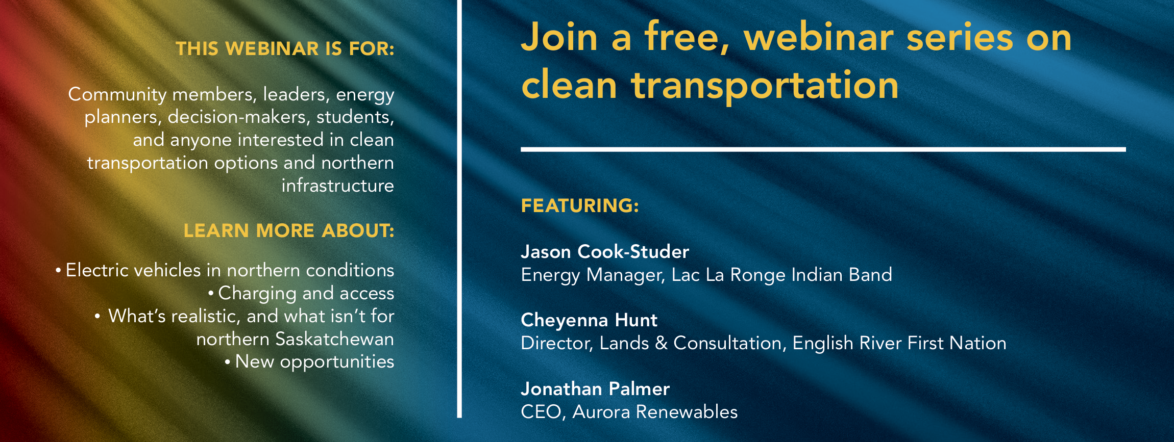 Join us to learn more about this initiative and share your questions and concerns about EV’s application in northern Saskatchewan.